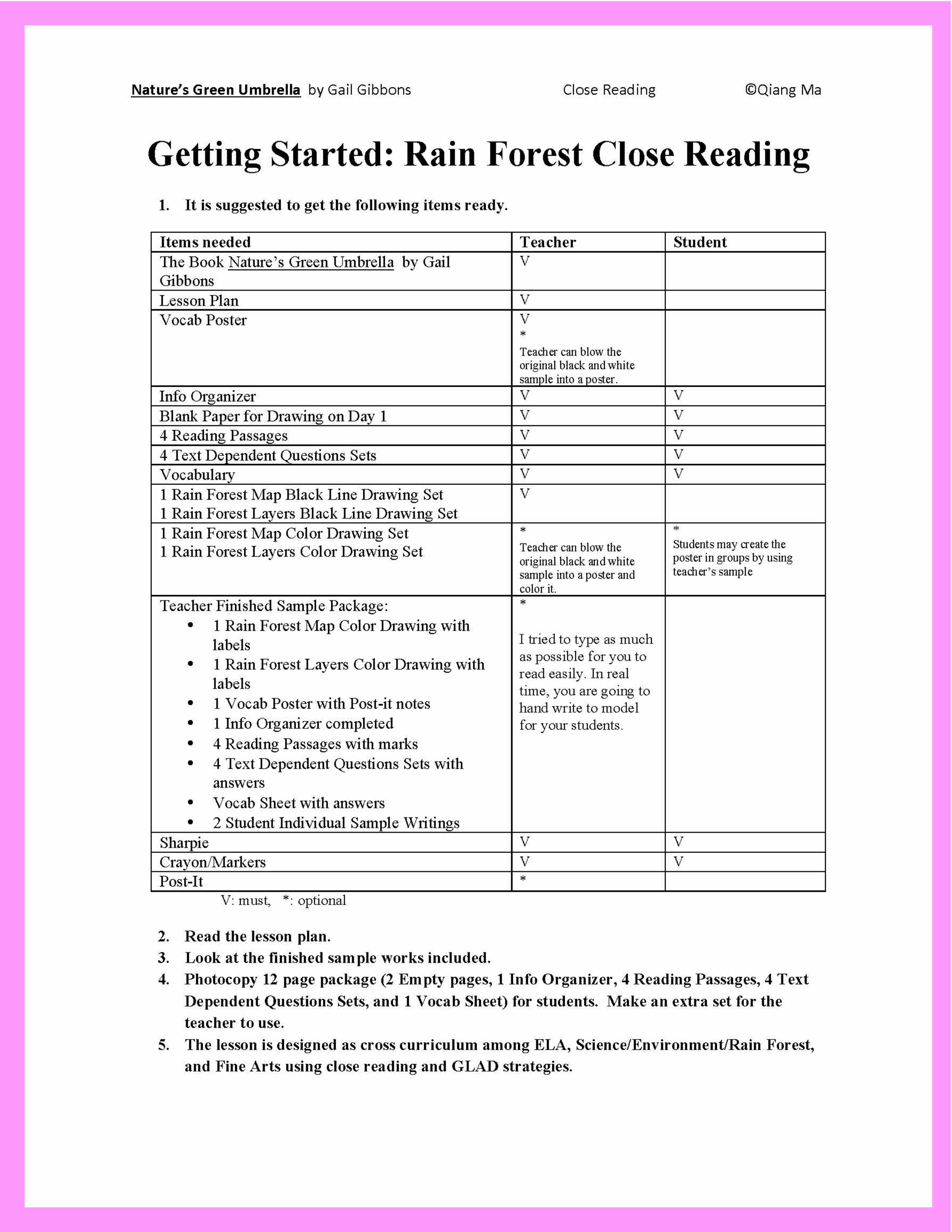 - 4 Reading Passages (Intro to Rain Forest, Rain Forest Ecosystem, Layers of Rain Forest, and Rain Forest Protection)