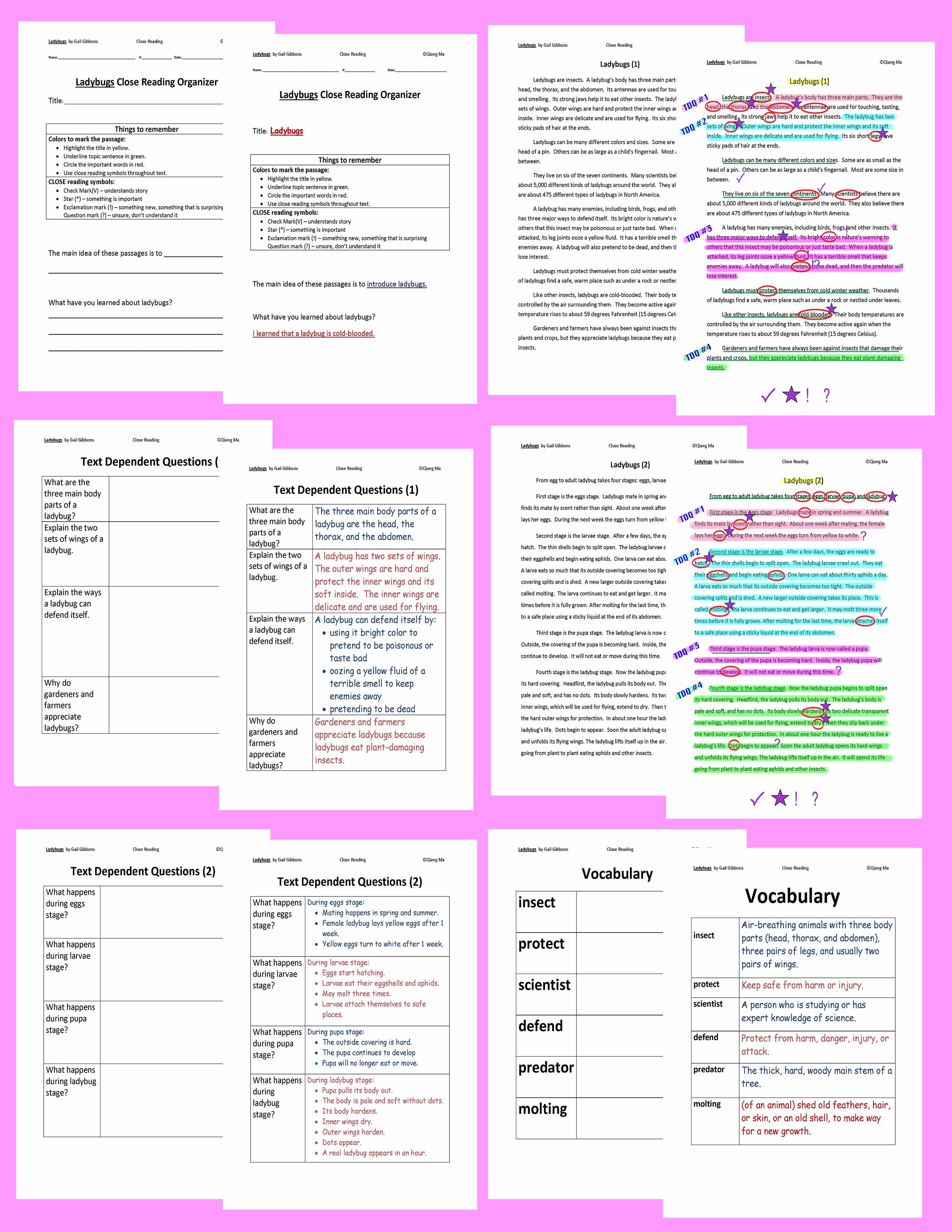 Teaching Science/Animal/Insect/Ladybug through Close Reading and Fine Arts using GLAD strategies. Prep Free! Grade 1-5.