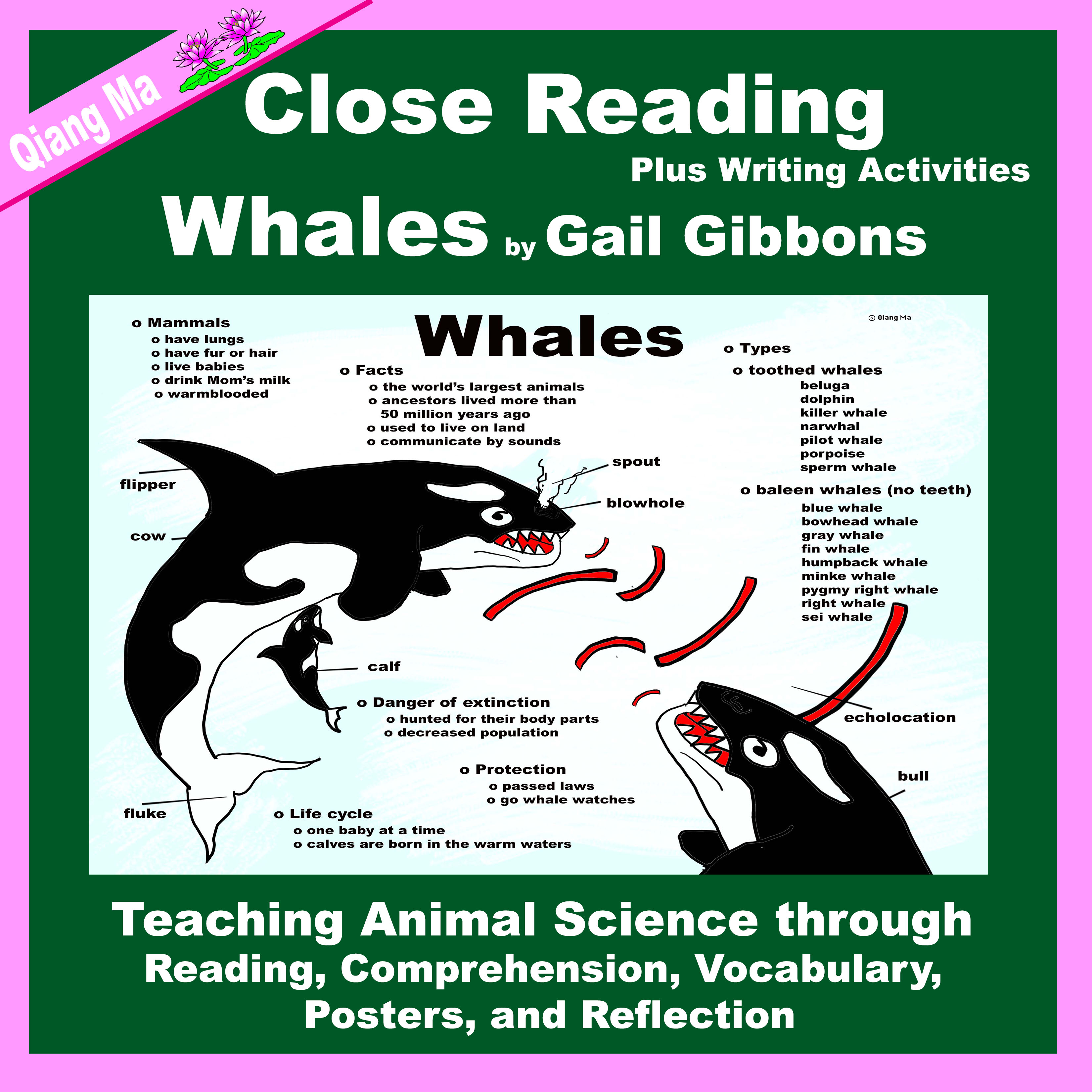 Teaching Animal Science/Mammal/Whale through Close Reading and Fine Arts with GLAD strategies. Prep free! Grade 1-5.
