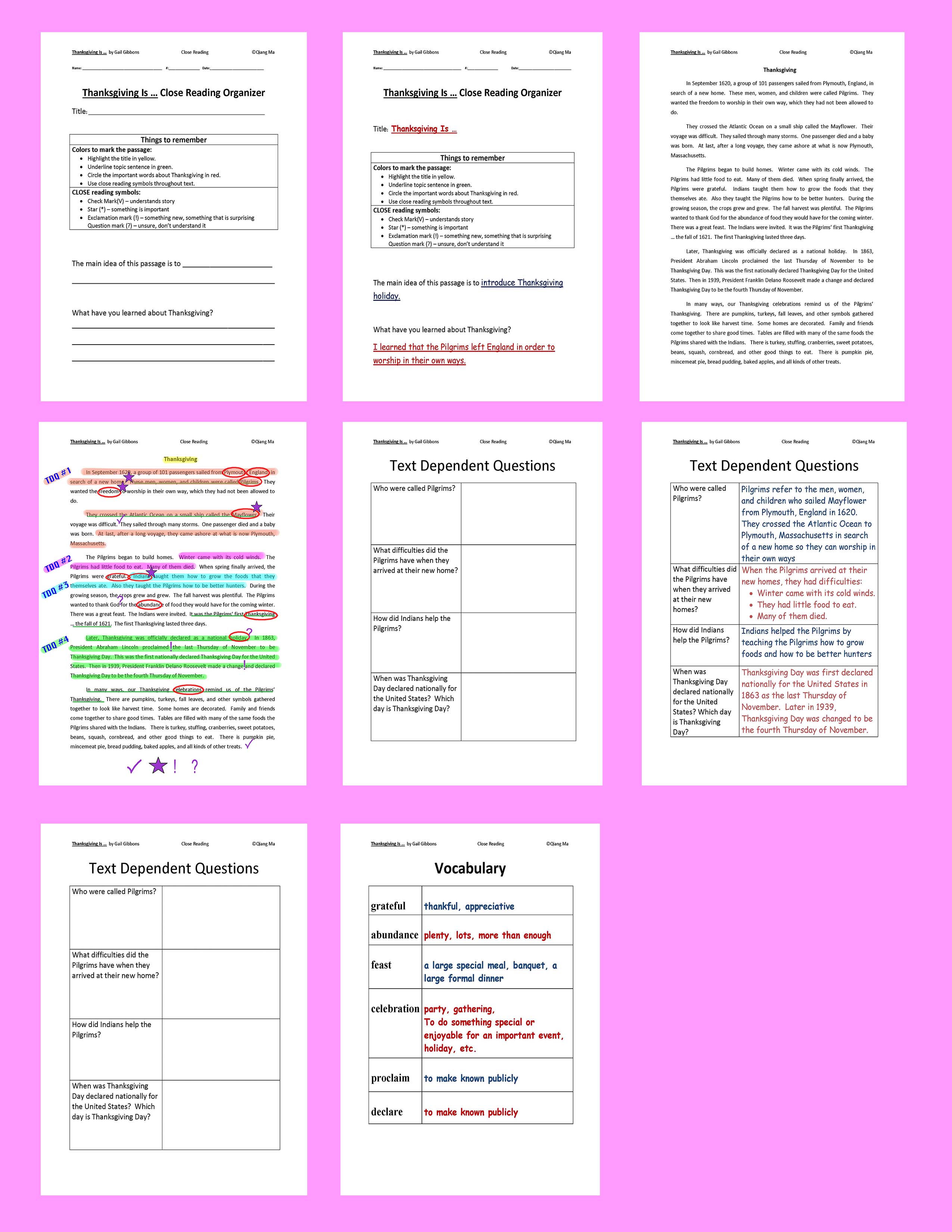 - 1 Text Dependent Questions Set ( with 4 questions)