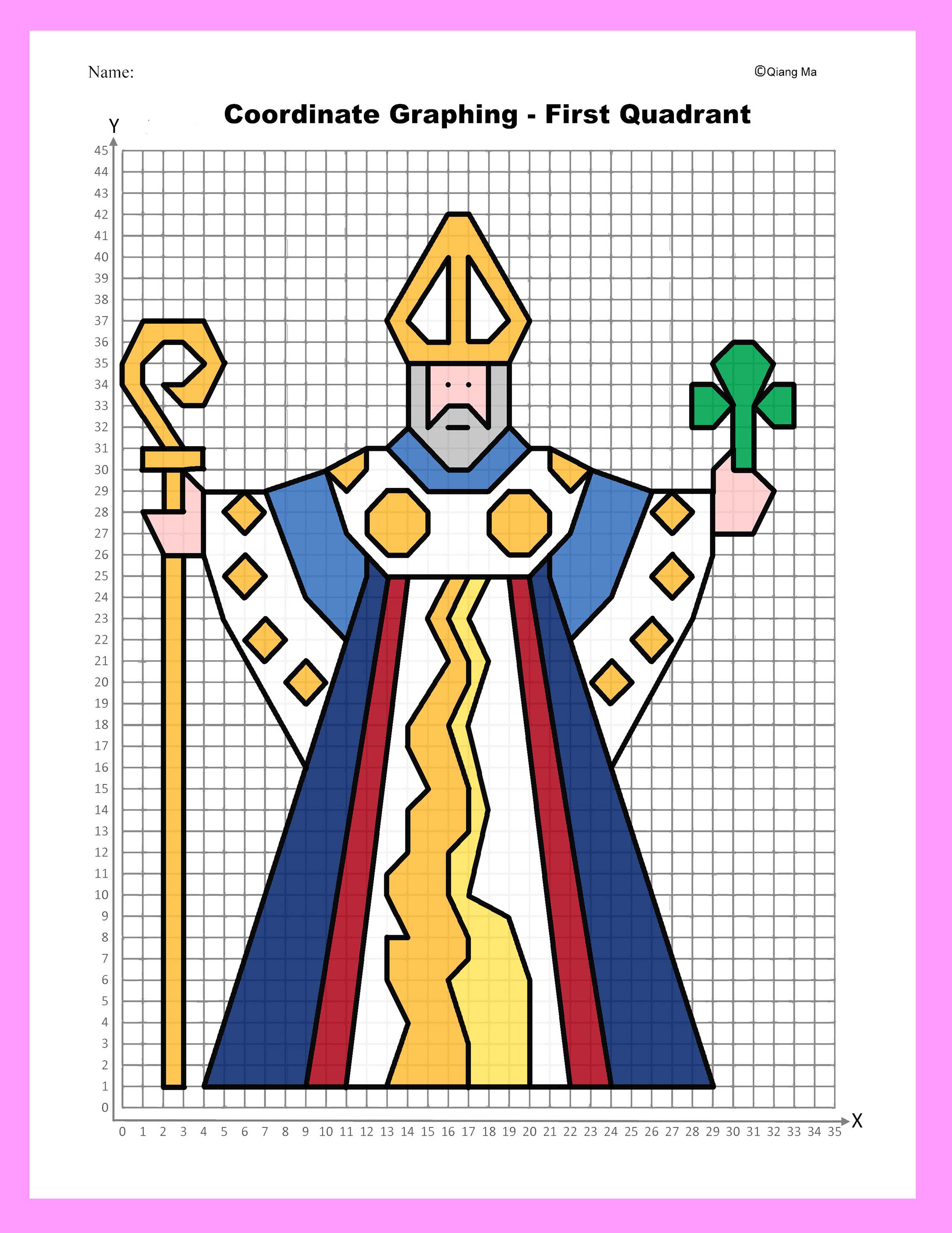 - One picture to be graphed in all four quadrants with positive and negative whole numbers