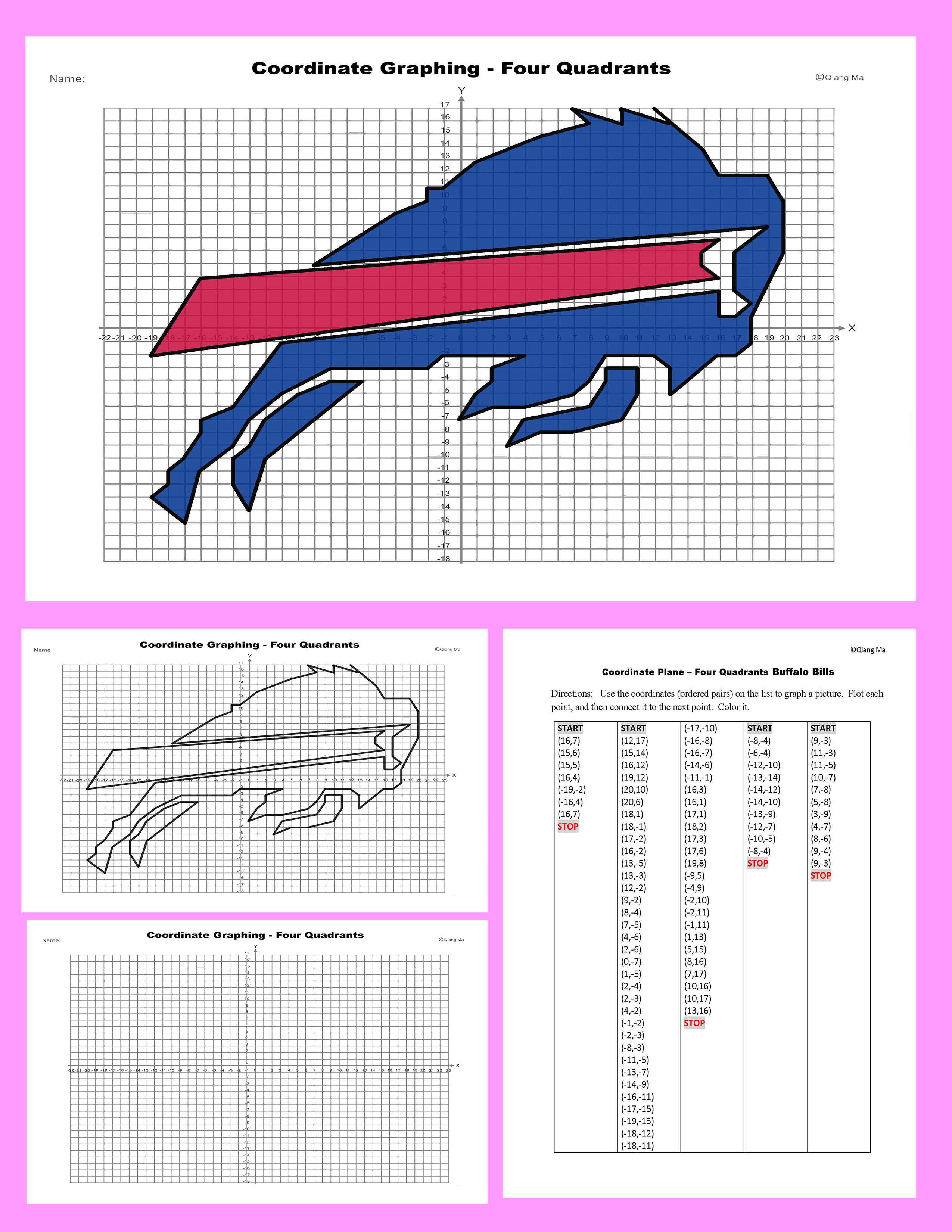 - One picture to be graphed in all four quadrants with positive and negative whole numbers