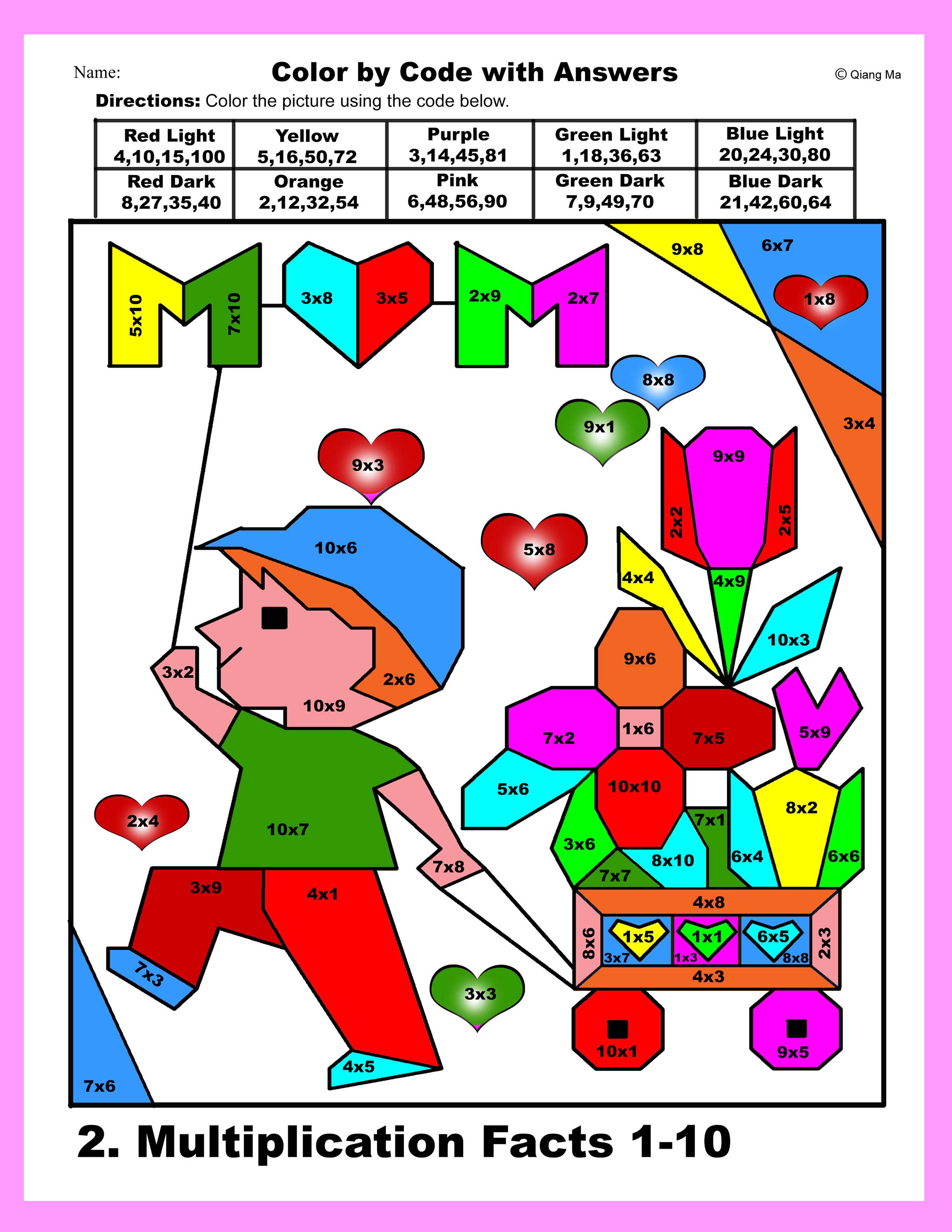 Multiplication time table practice. Independent work! Prep Free! It includes 4 Sets of individual worksheets. Each set includes a student’s version and a teacher’s version. There are over 200 problems in all. Students really need to work the math to figure out each color. Use for Mother's Day, or any time of the year. Tired of boring math fact drill sheets? Try this one, fun, fun, and fun!