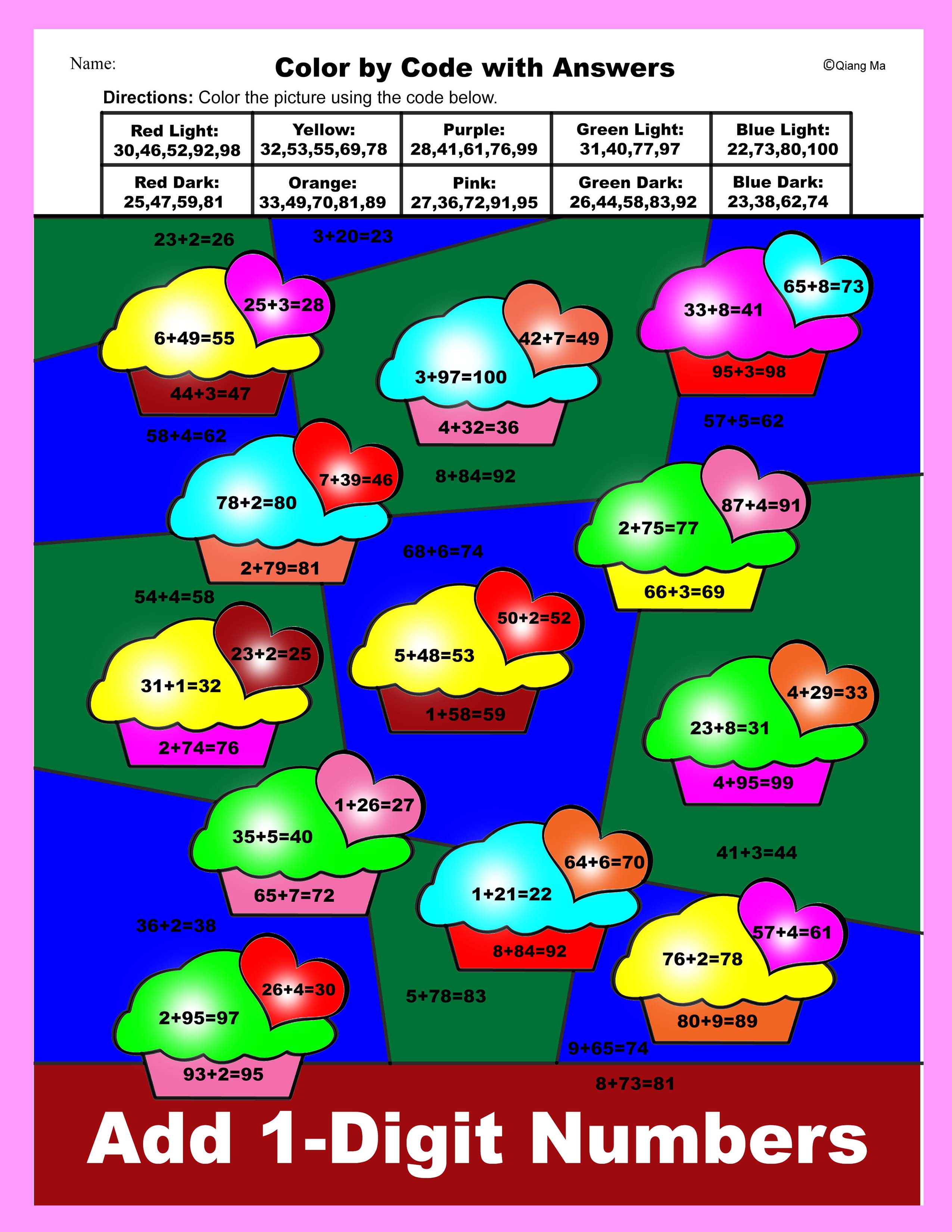 This Valentine addition and subtraction math facts includes 6 sets of individual worksheets. Each set includes a student's version and a teacher's version. There are over 288 problems total, ranging from easy to heard. Each set uses the same picture, but all with different coloring. Students really need to work the math to figure out each color. Use for Valentine's Day, or any time of the year. Prep Free! Differentiated! Independent!